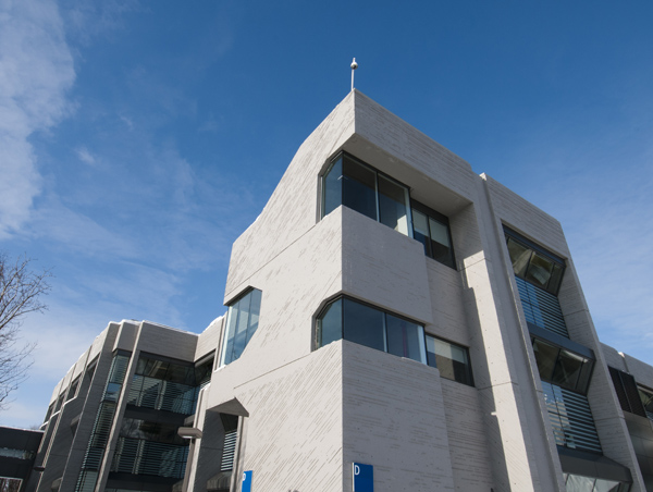 Inspiré du courant brutaliste qui caractérise beaucoup de constructions gouvernementales de l'époque, la composition de son architecture est axée sur le confort des usagers. Le bâtiment se lit de l'intérieur vers l'extérieur par un jeu habile d'interpénétration des espaces et des volumes. Les services et les laboratoires se retrouvent au centre du bâtiment alors que les aires communes et les bureaux occupent le périmètre largement vitré ouvrant sur un environnement densément boisé. Une cour intérieure, située entre les quatre blocs, agrémente la qualité de vie des occupants et permet un ensoleillement maximal.