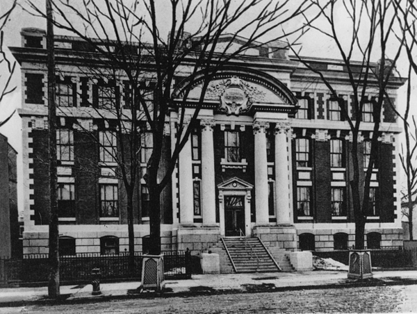 L'édifice Camille-Laurin a été un établissement d'enseignement secondaire et supérieur de style Beaux-arts construit en 1907 et conçu par l'architecte Alexander F. Dunlop. À l’origine, le bâtiment de deux étages, construit en pierres de grès et en briques rouges, s'implantait à l'intersection des rues Saint-Urbain et Sherbrooke dans l'arrondissement historique du Plateau-Mont-Royal, à Montréal. La façade principale, sur la rue Sherbrooke, est coiffée d'un portique classique soutenu par quatre colonnes ioniques dont le fronton arbore les armoiries québécoises.
