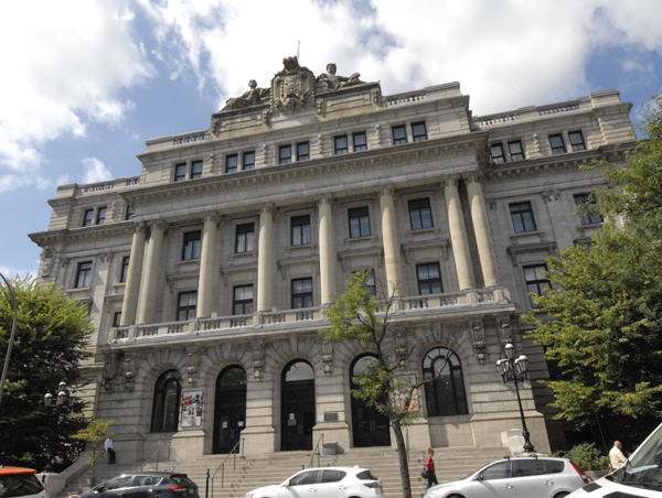 Le bâtiment en forme de « J » de style Beaux-arts est construit avec une lourde structure d’acier revêtue de pierre de taille de la région montréalaise. Les façades monumentales de l’ensemble, régies par la symétrie absolue des Beaux-arts français, se déclinent en quatre registres : sous-sol, rez-de-chaussée avec ouvertures cintrées, deux étages à colonnades ioniques en fonte terminées par une corniche à gros denticules puis un troisième étage surmonté d'un parapet à balustres ornementé et sur lequel se trouve une immense sculpture de Cérès (déesse de l'agriculture) et d'Hermès (dieu du commerce) au-dessus de l’entrée sur la rue Viger.
