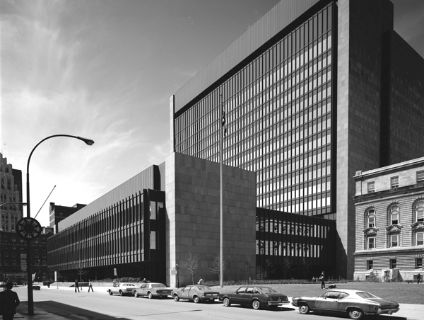 Ce palais de justice de style international est l'un des plus représentatifs du mouvement moderne, réalisé par des architectes québécois.